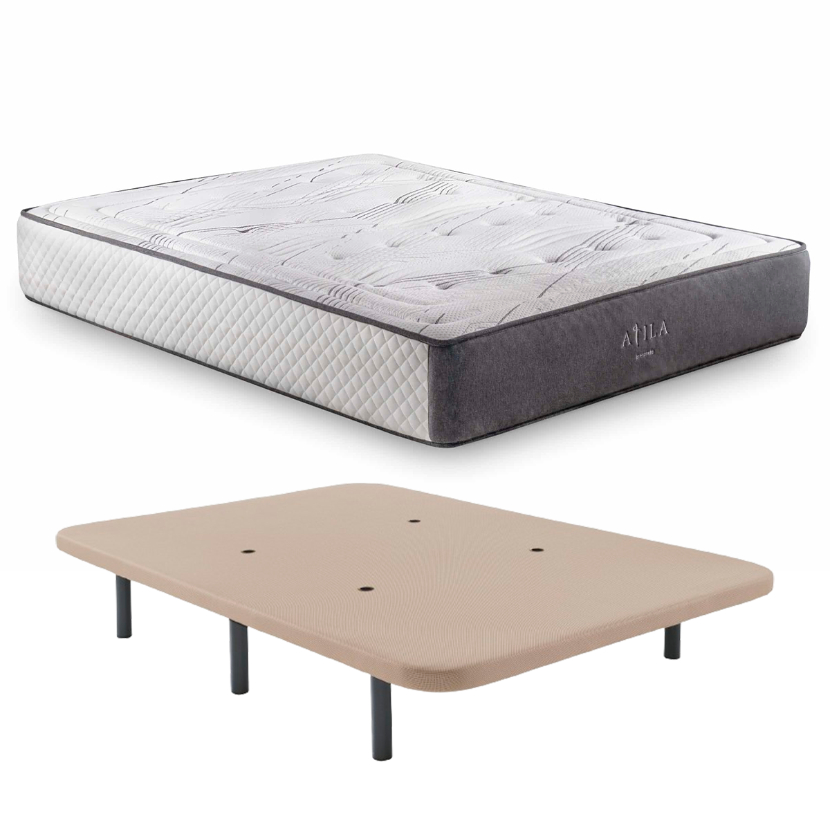 Atila + Base Tapizada 135 x 190 Descripción El colchón que te brinda la oportunidad de disfrutar de un alto confort con un diseño moderno a un precio muy asequible. Altura 28 CM Firmeza 8/10 Confort térmico 7/10 Viscotechnology + Multipocket 17 muelle ensacado Doble cara CONSULTAR DISPONIBILIDAD CON COMERCIAL volver a la lista