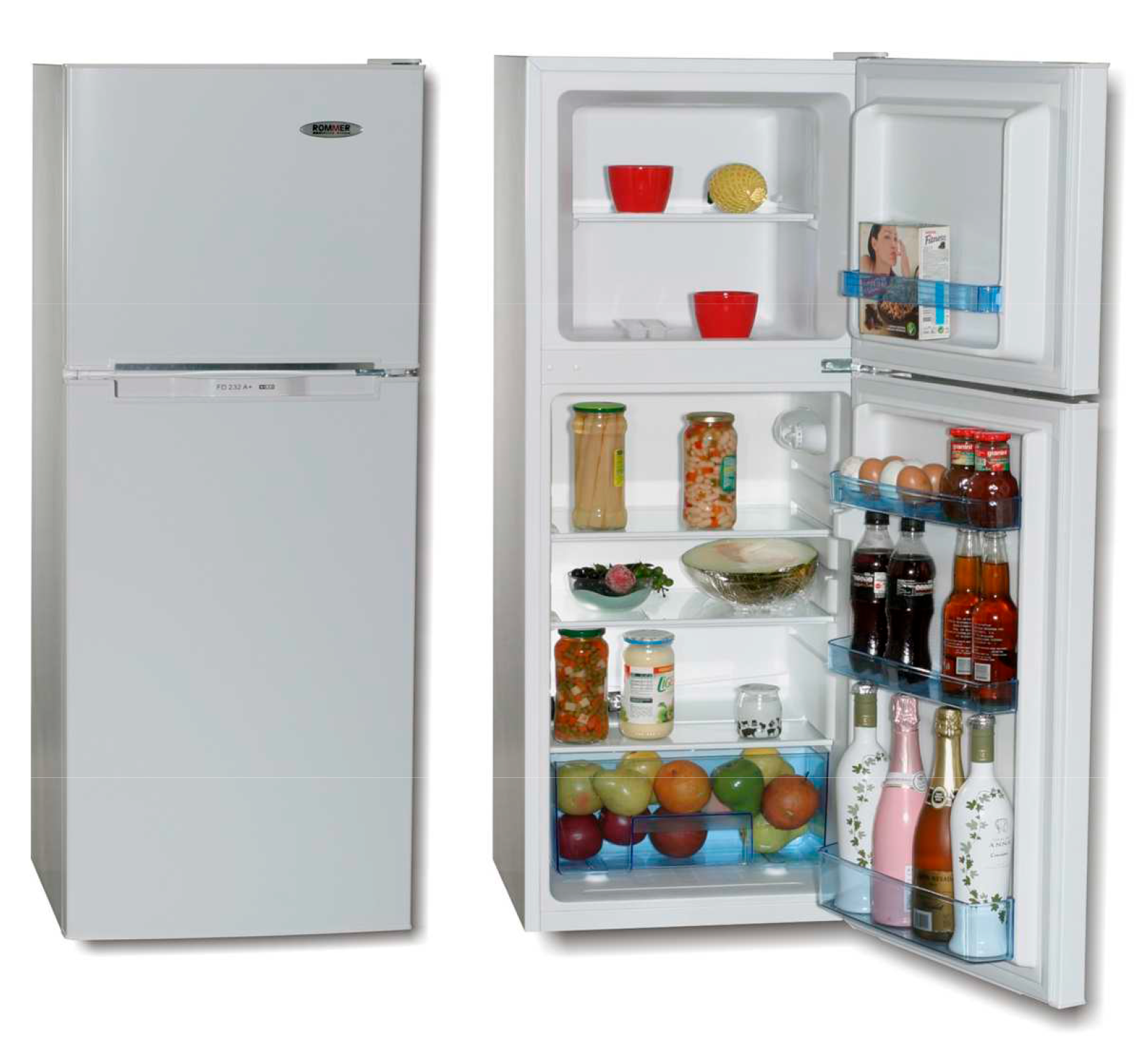 Frigorífico 2 puertas 129cm Rommer SKU: R-FE232 Descripción Dimensiones (cm): 129 x 48 x 49cm Consumo energía (kwh/año): 180 Clasificación energética E Capacidad de frigorífico 90L Capacidad de congelador 48L Color Frontal Blanco Puertas 2 Sistema cíclico volver a la lista