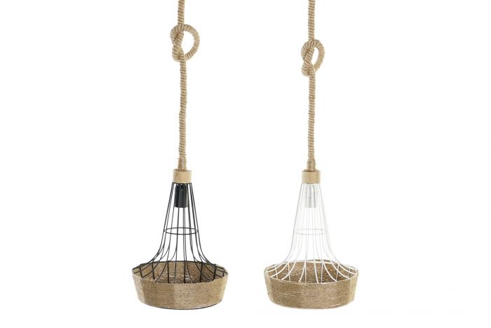 - Lámpara colgante de metal y cuerda
