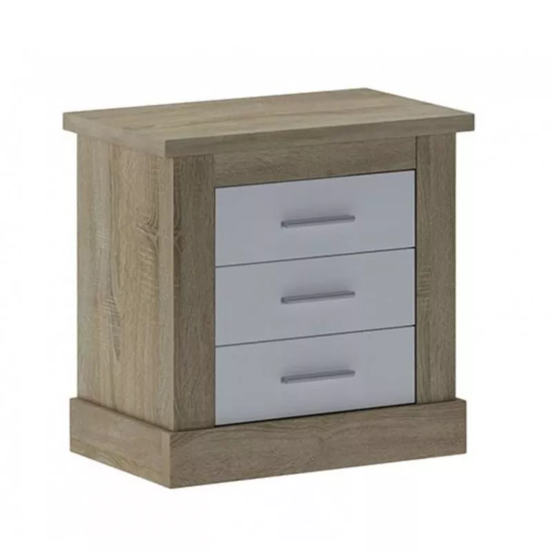 - Mesita de noche Chellen que cuenta con tres cajones en color cañón, para dar a la pieza ese toque fresco, actual y elegante. La serie Chellen, de color cambrian blanco y con tres cajones de almacenamiento. Fabricada en melamina de alta calidad con chapa sintética de 16 mm y 32 mm, posee herrajes metálicos que hacen de esta mesita un producto de gran durabilidad.
