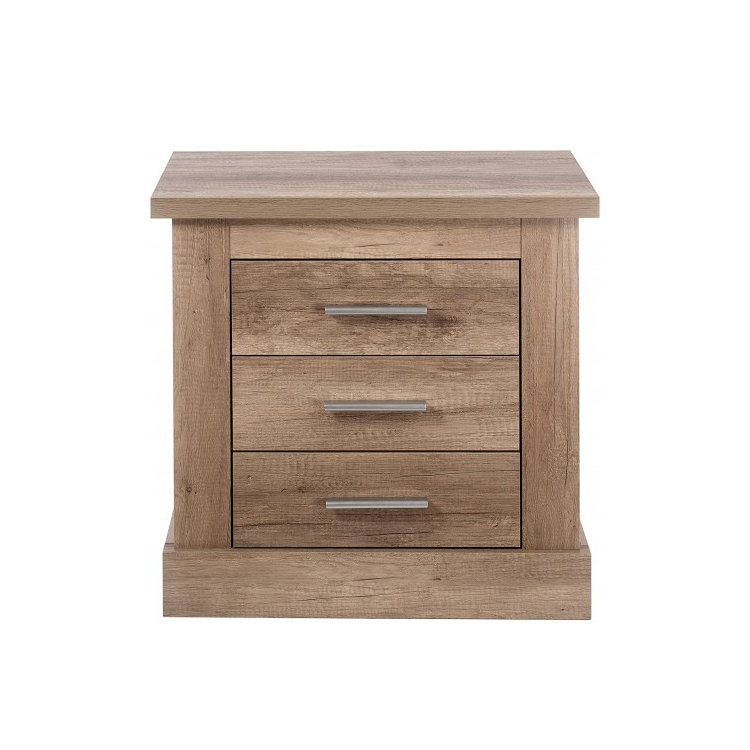 • Mesita de noche Chellen que cuenta con tres cajones en color cañón, para dar a la pieza ese toque fresco, actual y elegante. La serie Chellen, de color cañón y con tres cajones de almacenamiento. Fabricada en melamina de alta calidad con chapa sintética de 16 mm y 32 mm, posee herrajes metálicos que hacen de esta mesita un producto de gran durabilidad.