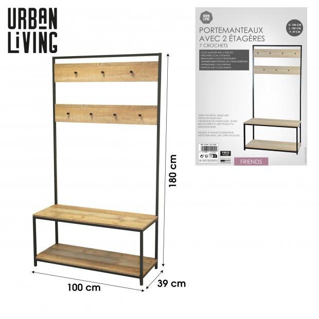 Perchero + Banco Zapatero Riverside Perchero + banco zapatero Dimensiones (cm): 100 x 39 x 180 cm Peso: 17 kg Descripción Perchero + banco zapatero Dimensiones (cm): 100 x 39 x 180 cm volver a la lista