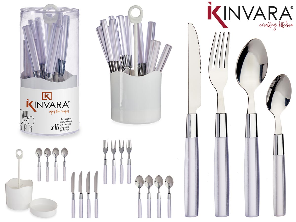 Set 16 cubiertos acero inoxidable mango blanco Set cubiertos 16 piezas Material: acero inoxidable Ref: AR-92339 SKU: AR-92339 Descripción Set cubiertos 16 piezas Material: acero inoxidable Ref: AR-92339 volver a la lista