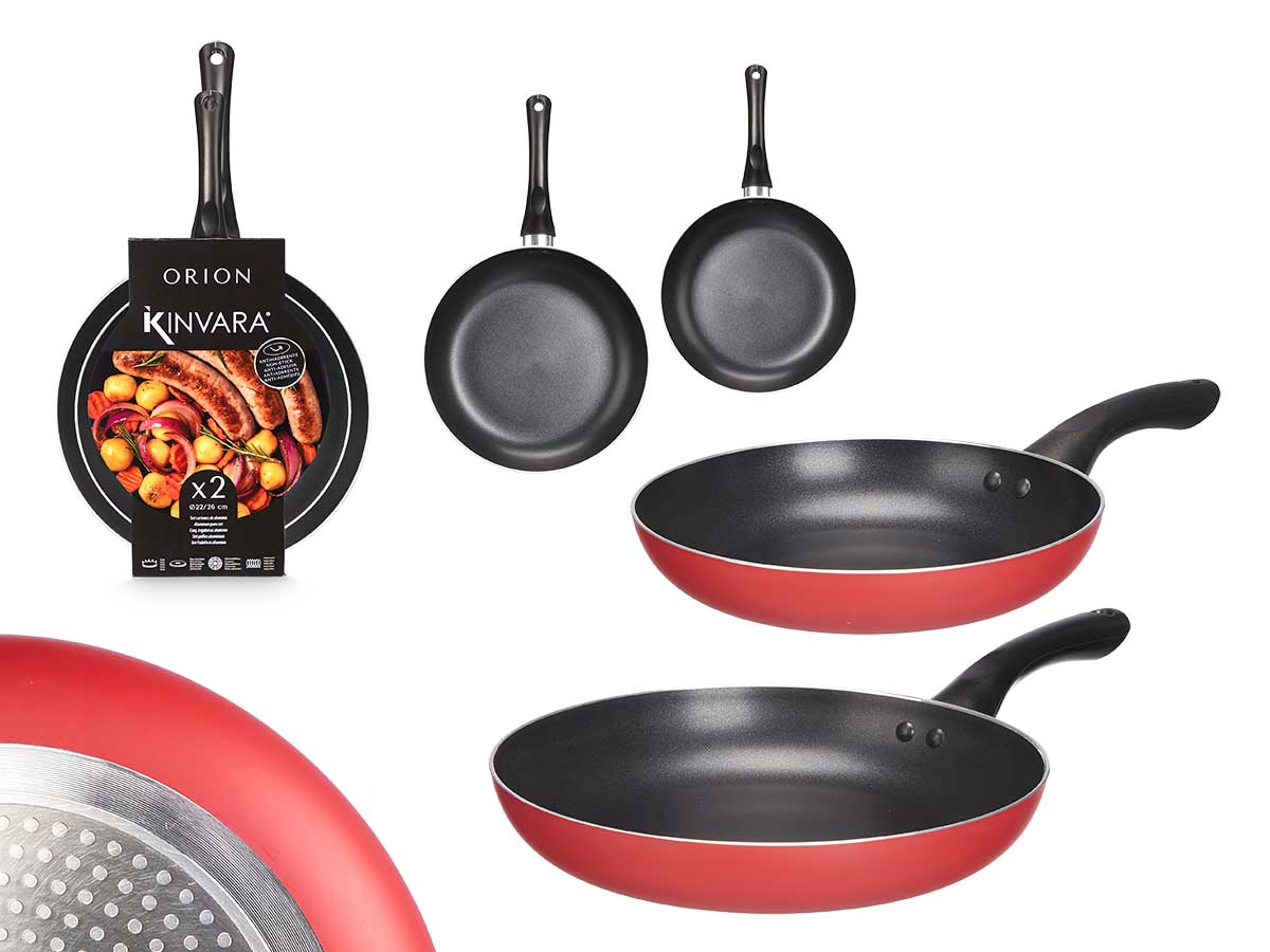 Set 2 sartenes aluminio rojo SKU: AR-11282 Descripción Set 2 sartenes aluminio rojo 22 y 26 cm de diámetro Apto para Gas + Induccion + Vitroceramica + Lavavajillas volver a la lista