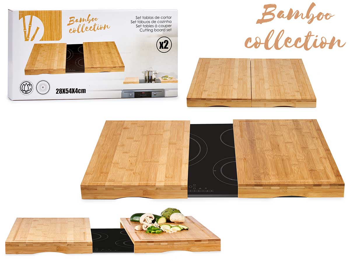 Set 2 tablas bambú vitro cocina 28cm Set 2 tablas para vitro Material: bambú Medidas: 56,2 x 54 x 4 cm. Ref: AR-81342 SKU: AR-81342 Descripción Set 2 tablas para vitro Material: bambú Medidas: 56,2 x 54 x 4 cm. Ref: AR-81342 volver a la lista