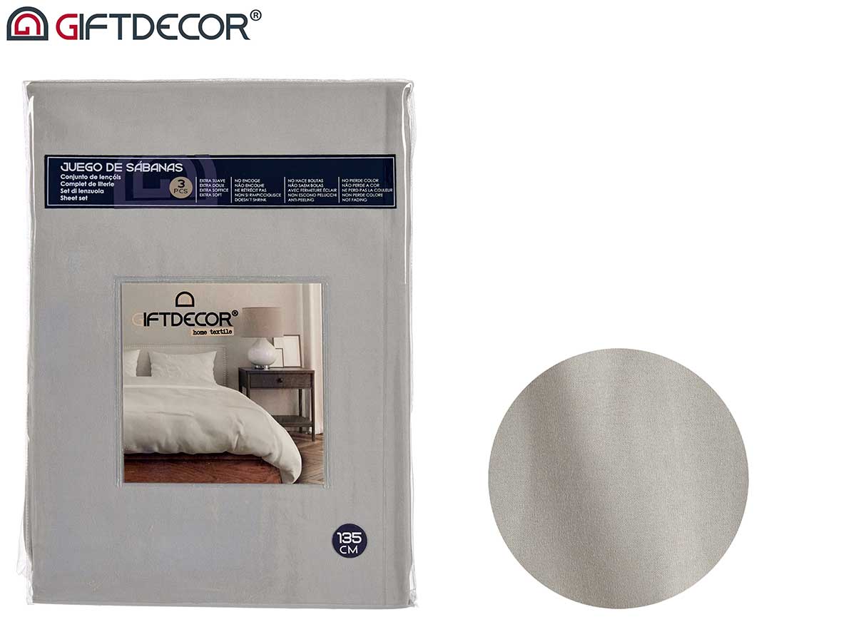 Set 3 sábanas 135cm - Gris Set 3 sábanas 135cm Color Gris SKU: AR-89606 Peso: 2 kg Descripción Set 3 sábanas 135cm Color Gris volver a la lista