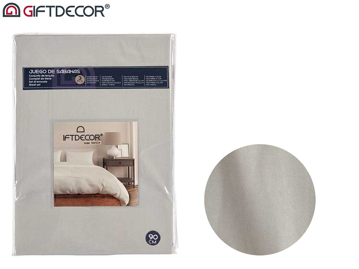 Set 3 sábanas 90 cm - Gris Set 3 sábanas 90 cm Color gris SKU: AR-89601 Peso: 1 kg Descripción Set 3 sábanas 90 cm Color gris volver a la lista