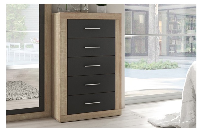 • Moderno sinfonier de cinco cajones con marco perimetral ideal para ambientes actuales.