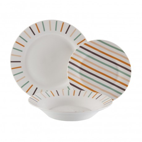 Vajilla 18 pzs Jasper SKU: V-22380033 Descripción Vajilla 18 pzs Jasper 6 Platos llanos 26,5 cm 6 Platos hondos 20cm 6 Platos postre 19cm Material: Porcelana volver a la lista