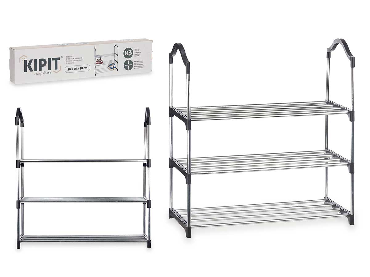Zapatero 3 alturas 3 barras estantes - Negro SKU: AR-88958 Descripción Zapatero 3 alturas 3 barras estantes – Negro Dimensiones (cm): 38,5 x 14,5 x 60 cm. Fabricado en Metal volver a la lista