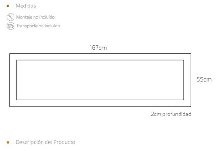 • Medidas: Ancho: 167cm. – Fondo 2cm. – Alto: 55cm.