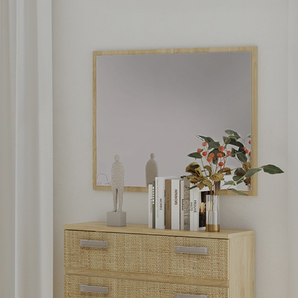 - El espejo con marco Lara es ideal para crear un ambiente íntimo y fresco en el dormitorio.
