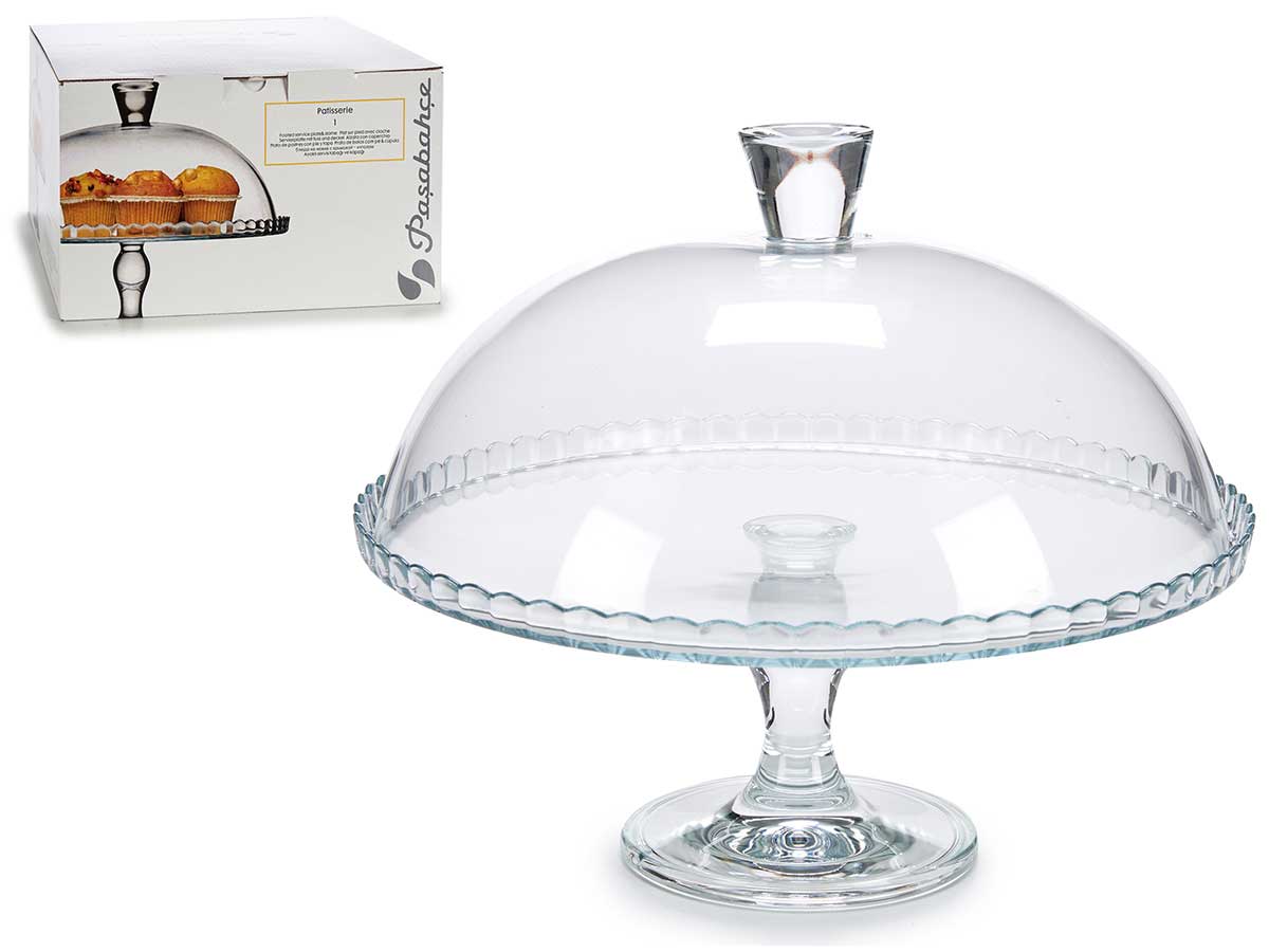 Tartera cristal con pie y tapa