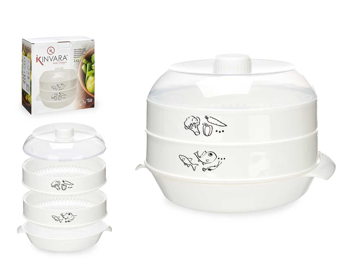 • Vaporera para microondas gran capacidad, varios pisos/compartimentos.