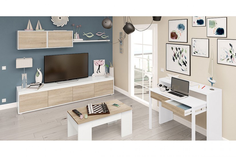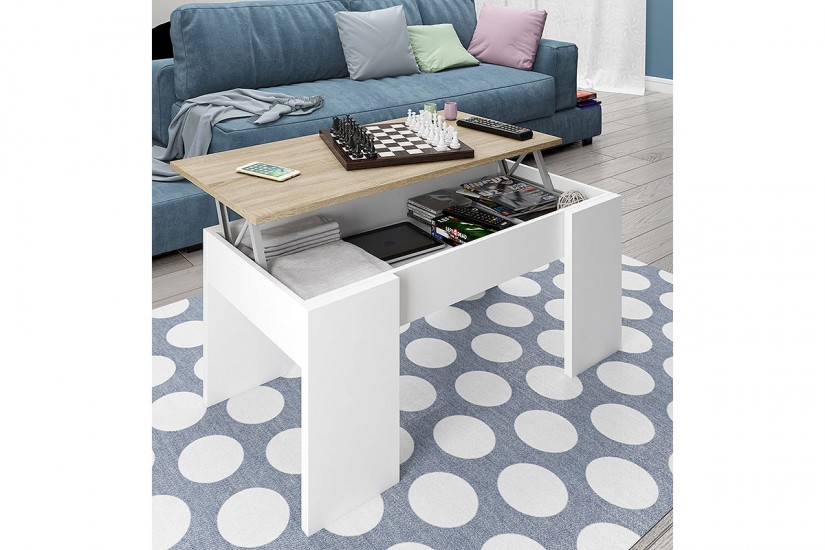 - La mesa elevable dispone de un hueco para almacenaje donde podrás guardar tus libros y revistas, el ordenador o el mando de la TV.