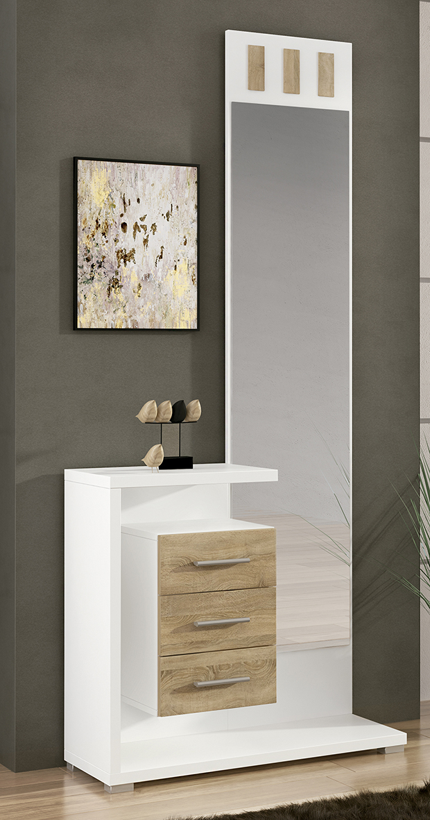 - El mueble de recibidor Prisma es un estupendo mueble para el recibidor que presenta una forma estrecha y alargada, ideal si no cuentas con mucho espacio en el recibidor pero en cambio sí que dispones de una gran pared libre y lista para ser decorada.