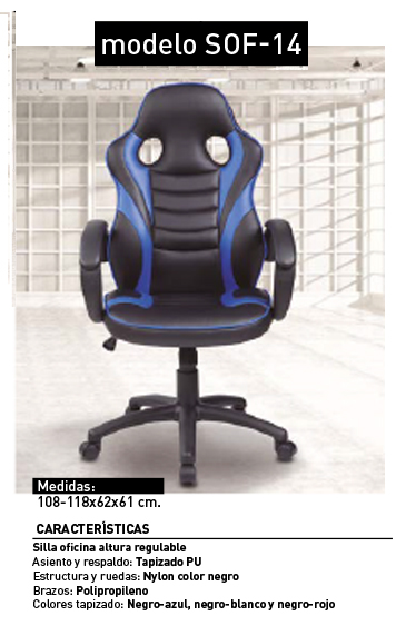 - Además, dispone de reposacabezas integrado en su alto respaldo, así como asiento giratorio y ajustable en altura.