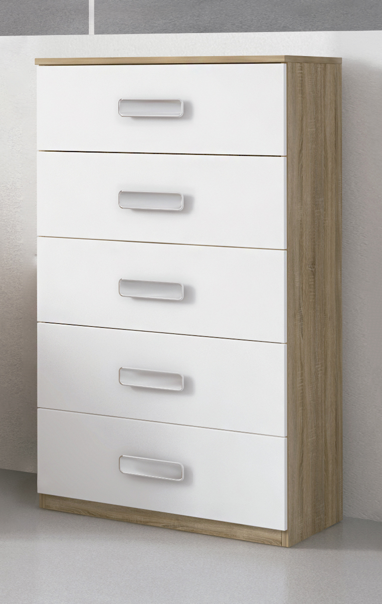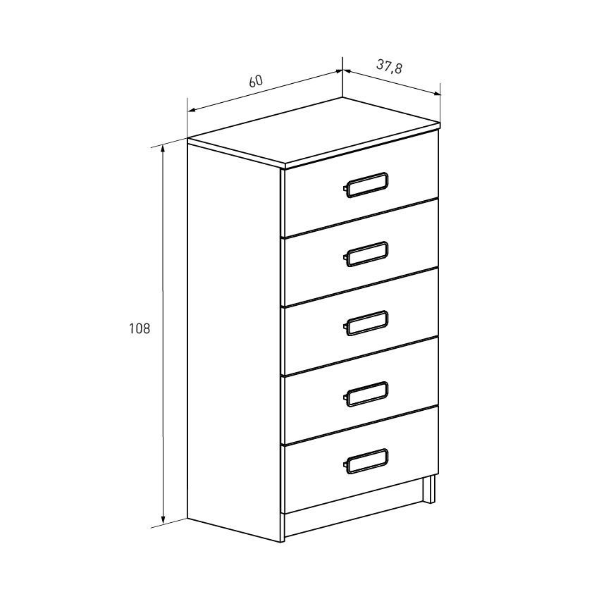 • Se caracteriza por su gran capacidad de almacenaje, puesto que dispone de 5 cajones color Blanco donde puedes depositar gran cantidad de cosas. Además de su alta capacidad de almacenaje, te proporcionará un espacio lleno de bienestar y modernidad, ya que su precioso diseño con cajones lisos blancos da un toque muy moderno al dormitorio, recibidor o cualquier estancia.