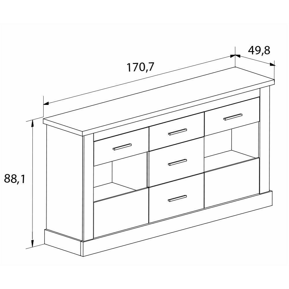 • Aparador compuesto por tres cajones y dos puertas de cristal, con acabados aparentemente rústicos pero que guarda una original línea moderna.